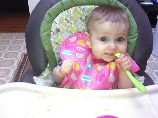 Food... It's been as interesting as ever. Sophia's discovering all sorts of food, but I can't help mentioning her love for the pickled asparagus and pickles! The faces she made when first trying them were just precious. But she's fallen in love with these treats! In fact, she'll eat anything as long as you alternate it with pickles... or cheese (she loves it!).